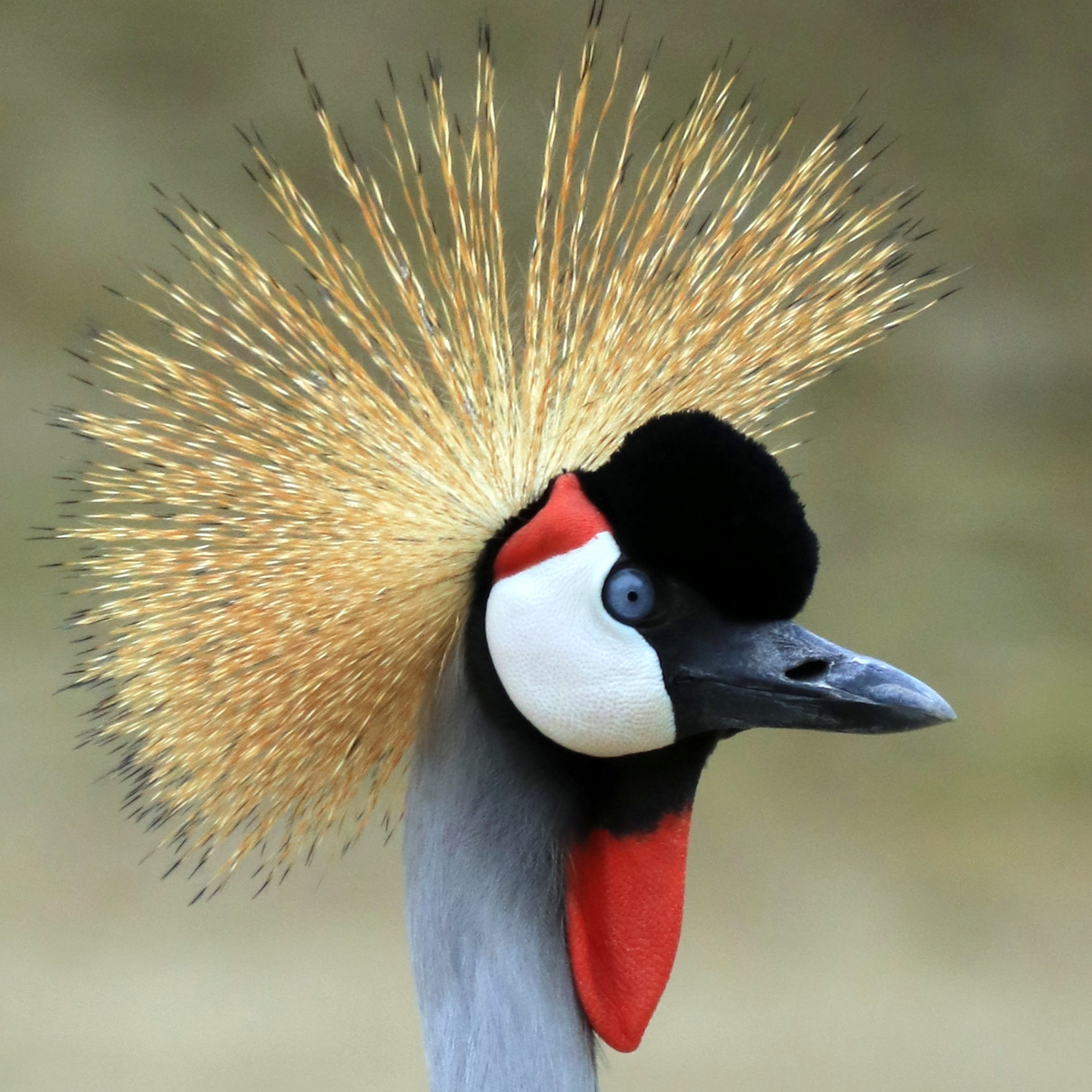Der Kronenkranich aus Ostafrika hatte sich jedenfalls gut frisiert und glänzte in voller Farbenpracht.