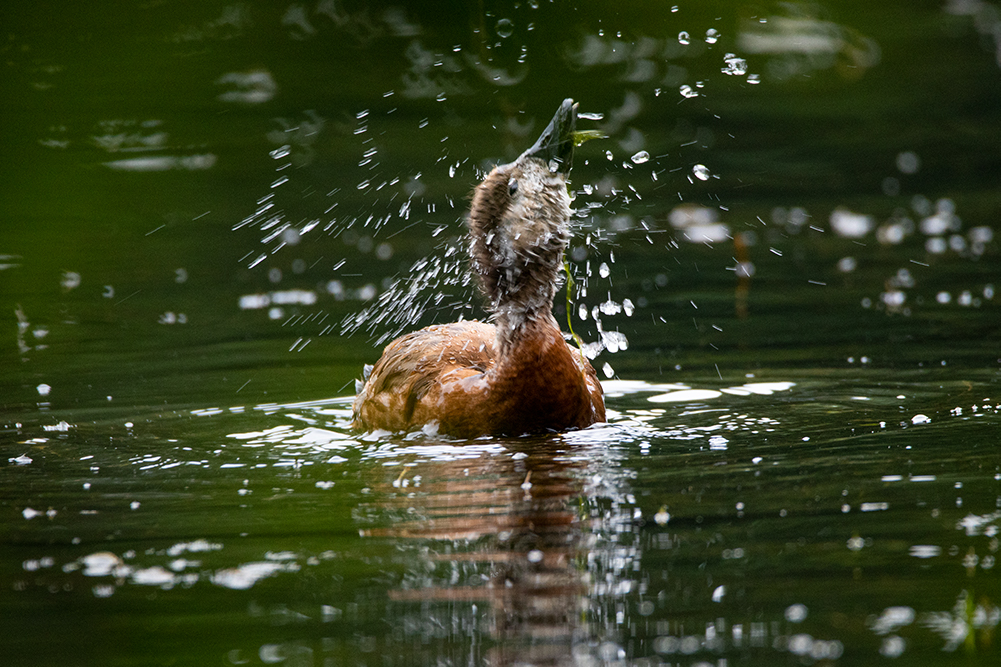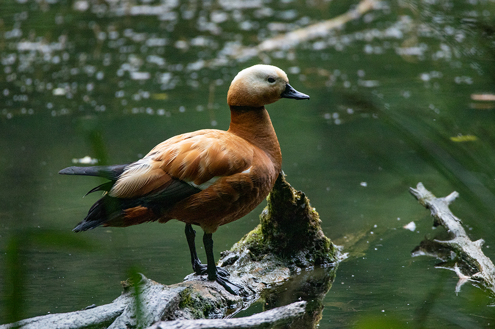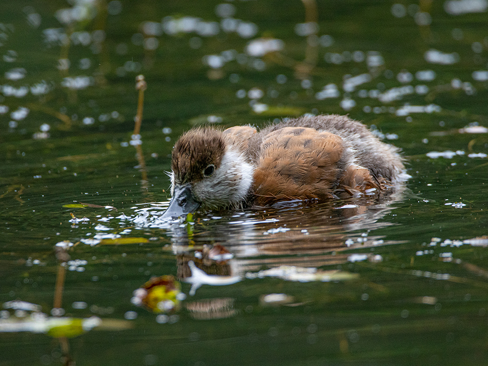Kurze Zeit später kam die Rostgans mit ihren Jungen angeschwommen, und wir konnten sie ungestört beobachten. Die Wasserspiele der Küken waren herzallerliebst, und ich konnte mir ein Schmunzeln bei der ein oder anderen Situation nicht verkneifen.
