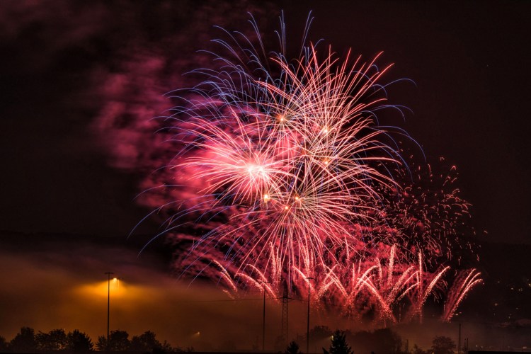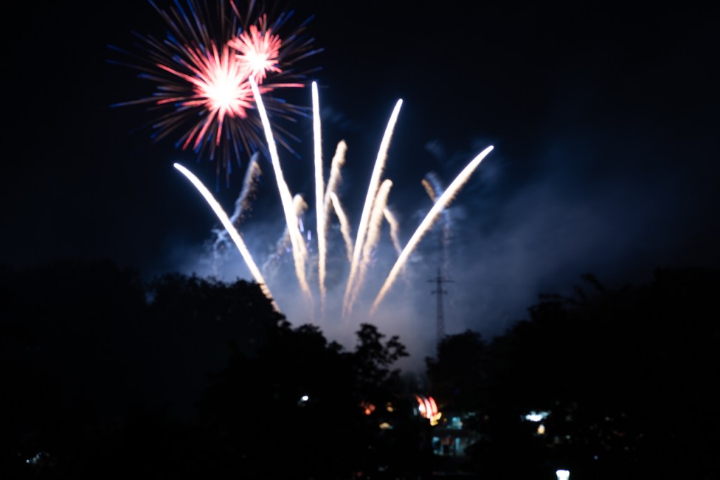 Ein Feuerwerk im Sommer zu fotografieren, hat für eine Frostbeule wie mich einen enormen Vorteil: angenehme Temperaturen! Was gibt es Schöneres, als sich mit ein paar Gleichgesinnten an einem lauen Sommerabend zu treffen? Es gibt natürlich schönere Orte als das Parkhausdeck eines Supermarktes, aber wenige mit einem besseren Rundumblick. Und während man wartet, dass das organisierte Feuerwerksspektakel losgeht, macht man fast nebenbei Fotos, die es mit jeder Leuchtrakete aufnehmen können. Das ist doch auch schon fast Lichtmalerei, oder?