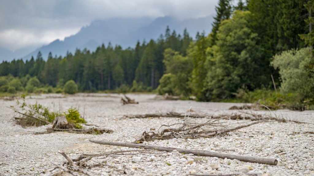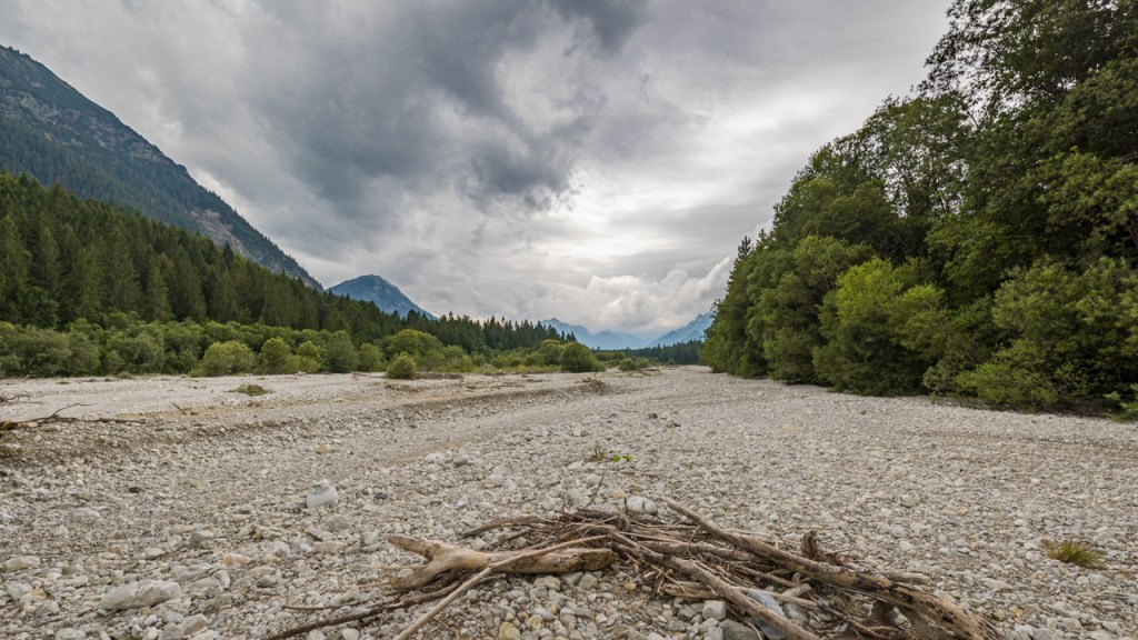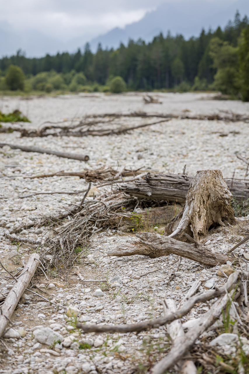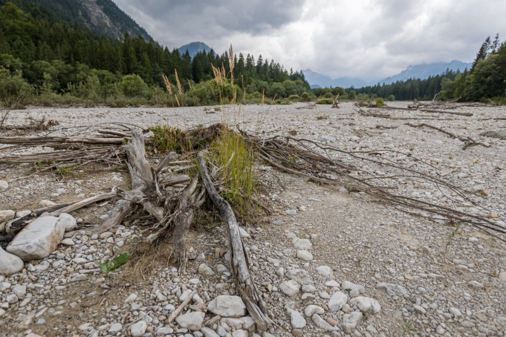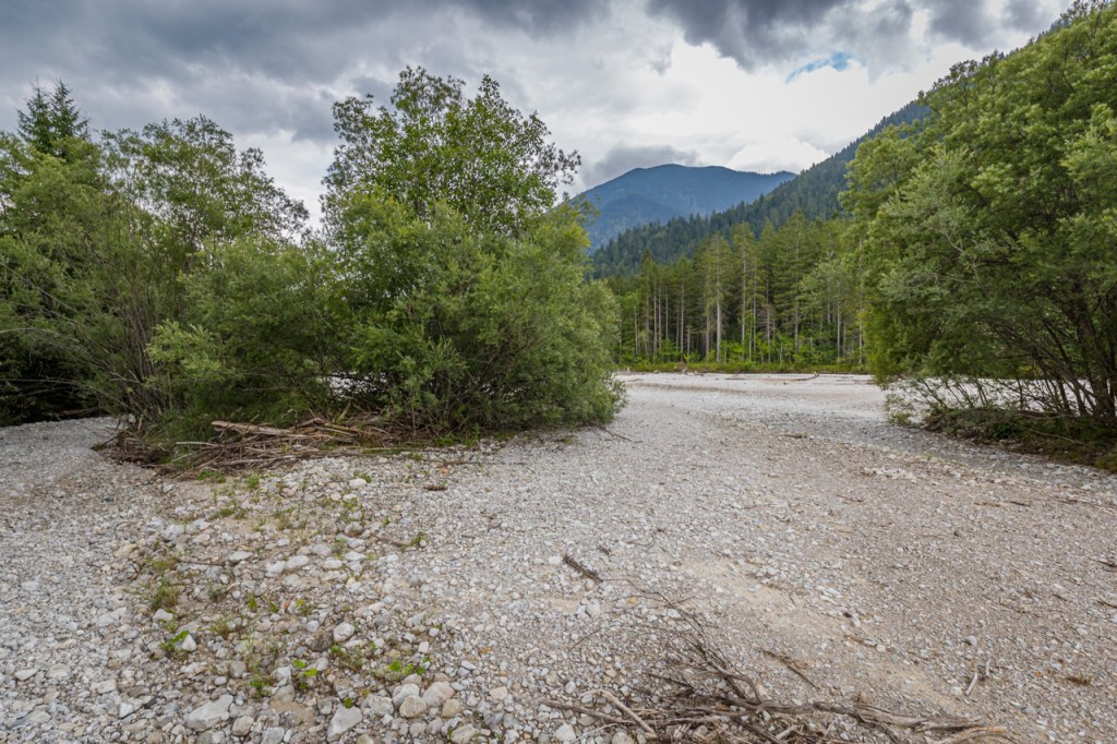 Nur weil man im Gebirge ist, muss man ja nicht immer auf die Berge rauf. Habe ich mir gedacht und bin ins Tal der Linder gefahren. Das liegt nicht weit von Oberammergau und ist eines der ganz wenigen Täler, in denen der Fluss nicht reguliert ist, sei es zur Energiegewinnung oder zum Schutz vor Hochwasser. Hier gibt es noch eine naturnahe Auenlandschaft mit sehr viel Dynamik und einer Landschaft von ganz eigener, herber Schönheit. Man fühlt sich hier einfach „steinreich“!