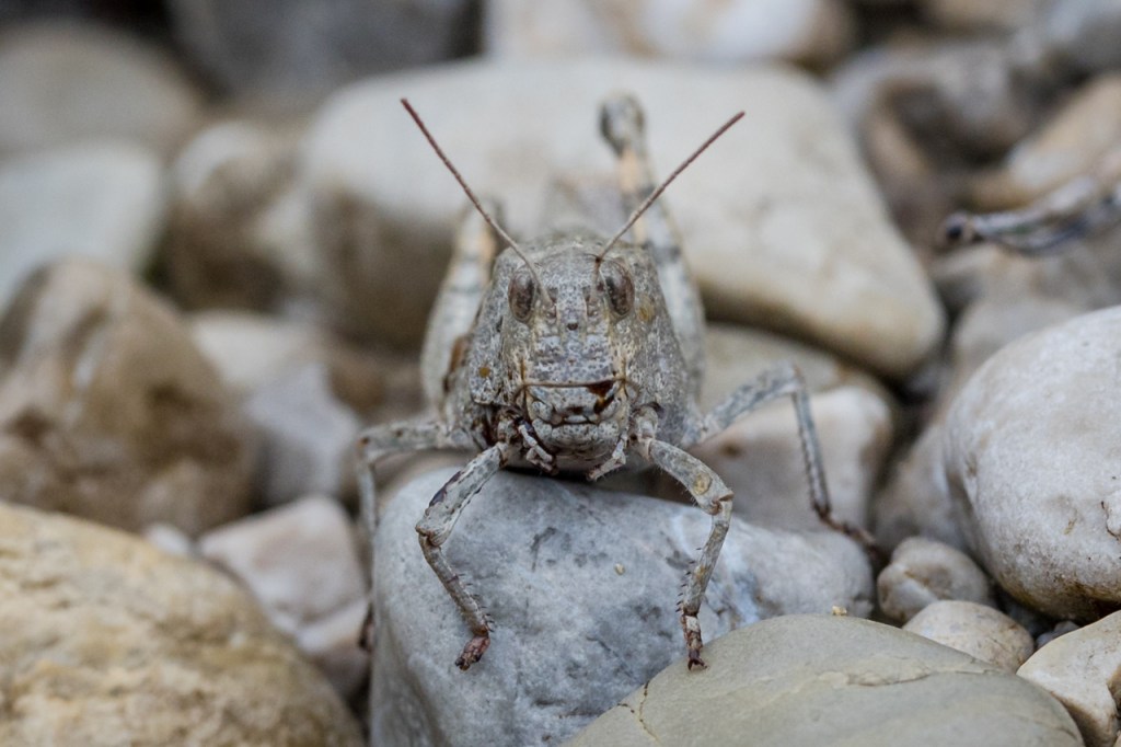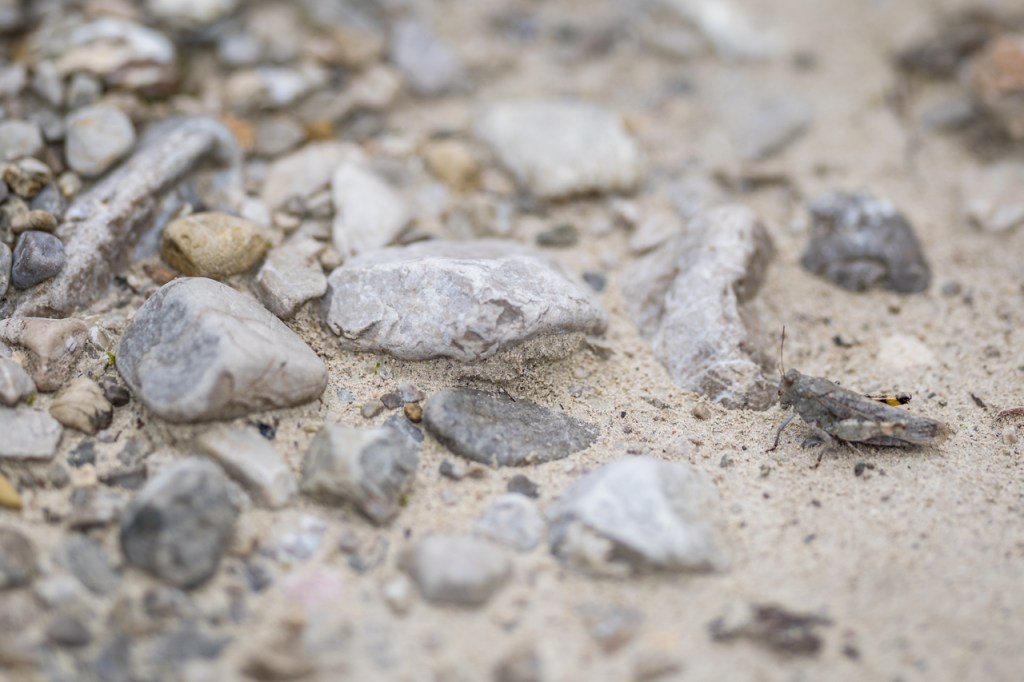 Auch aus einer eher tristen Schotterwüste können durch veränderte Blickwinkel und Kamerapositionen tolle und interessante Fotos entstehen. Bei den Detailaufnahmen würde mich besonders interessieren, welche Farben die Schrecke beim Sprung/Flug zeigt. Ich werde mir in Zukunft solche Extremorte genauer anschauen.