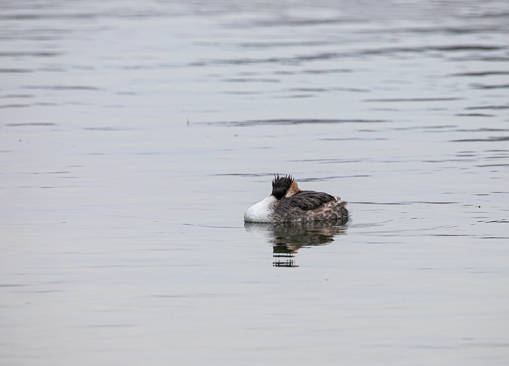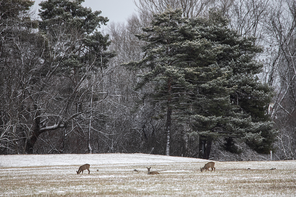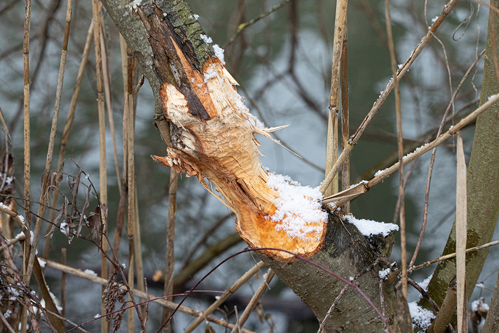 Die Landschaft hier zeigte sich im stillen Winterkleid. Die Ruhe und das leicht schneebedeckte Ried lassen auf den ersten Blick das Leben, das sich im Frühjahr und Sommer hier zeigt, vermissen. Doch lässt man den Blick über die weiß gezuckerten Flächen streifen, sieht man ein großes Rudel Rehe, das am jetzt spärlichen Riedgras knabbert. Dort am Wassergraben sieht man die Nagespuren des Bibers. Was für ein fleißiges Kerlchen. Krickenten flitzen vorbei, zu scheu und zu schnell für den Fotografen. Im Wasser gönnt sich der Haubentaucher ein Nickerchen. Wohlverdient. Nebenan steht der Silbereiher im Schilf und will partout nicht als Model herhalten. Lieber aus sicherer Entfernung den komischen Typen mit der Kamera beobachten. Doch ein Rotkehlchen erbarmt sich und tanzt frech vor unserer Linse, wenig scheu und eher neugierig, als will es sagen “ Hier, mach doch von mir ein Foto“. Gerne tun wir ihm den Gefallen.