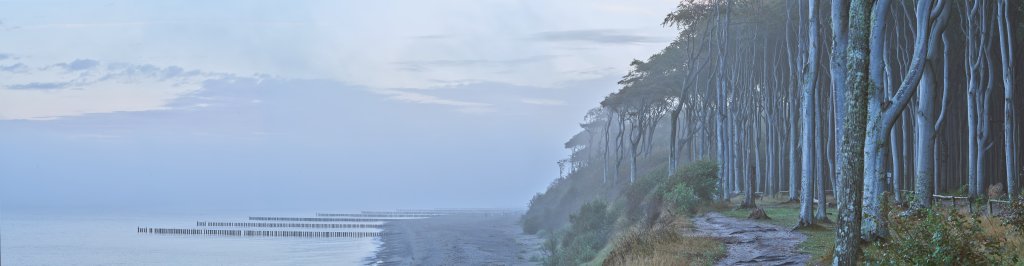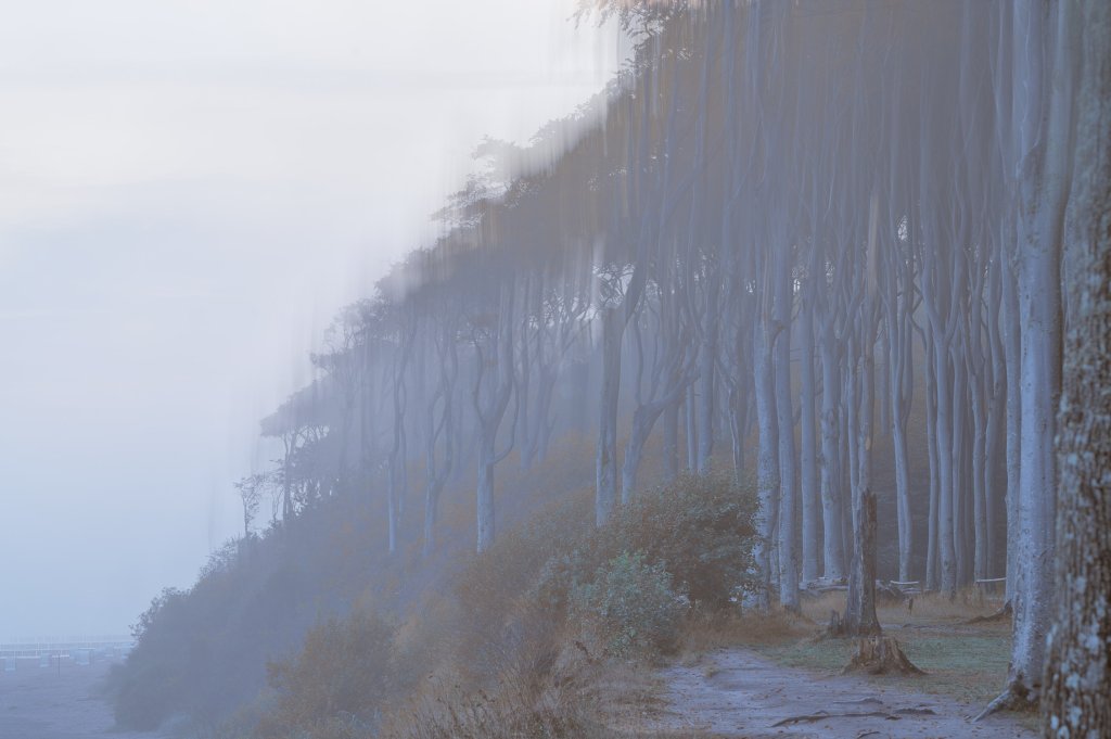 Dann kommt die Erlösung. Die Morgendämmerung lässt die Ostsee erahnen. Der Ort des Begehrens kommt näher; dort wo die Ostsee die Buchen und das Unterholz geformt hat.