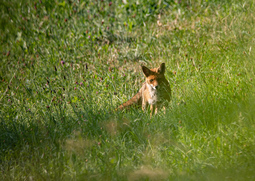 Ob nun bei Wanderungen am Morgen, bei denen sich der Nebel über den Hängen zeigte, oder mit dem Teleobjektiv als Begleiter, wir hatten fast immer Gesellschaft. Mal war es ein Fuchs, der sich vorsichtig und doch neugierig näherte, dann wieder einer der vielen Schmetterlinge, die sich im Sonnenlicht wärmten.