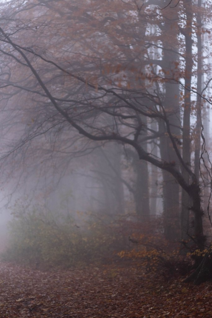 Mystische Stimmungen. Farben gleichzeitig gedämpft und leuchtend. Klare Sicht auf Nebelschwaden. Raum zum Hinschauen, Hinhören, Einfühlen. Große Bäume und kleine Pilze zeigen mir auf ihre eigene, sanfte Weise, daß sie eigenständige, lebendige Wesen sind und ich als Mensch in ihrem Lebensraum zu Gast sein darf.  Die trockene (in diesem Fall allerdings ziemlich naßkalte) Realität und die Welt der Wunder liegen oft nur einen kleinen Gedanken-Schritt auseinander…