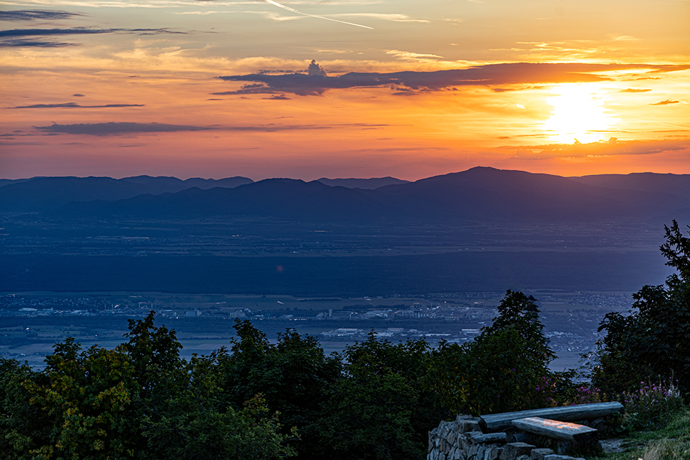 Nach kurzer Fahrt am Gipfel angekommen, konnte ich nachvollziehen warum dort oben einer ihrer Lieblingsplätze ist. Die Aussicht ist phänomenal. Man hat quasi eine komplette Rundsicht. Frankreich, Schweiz, Schwarzwald. Ich war schon sehr beeindruckt.