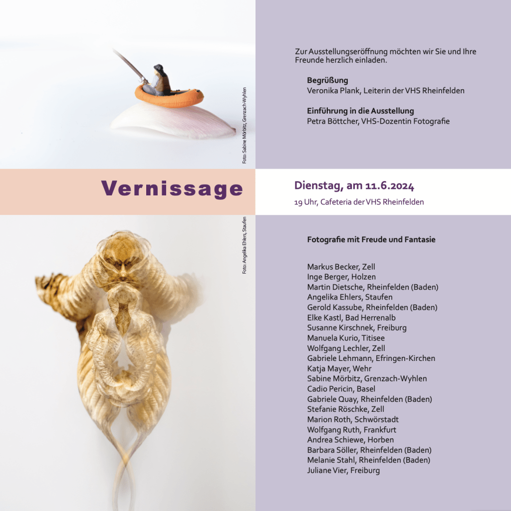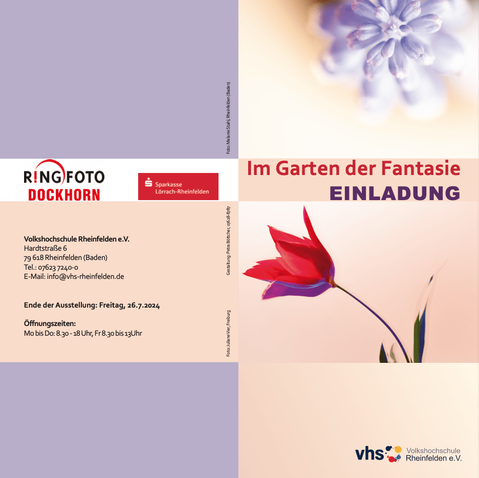 Die VHS Rheinfelden feiert ihren 60. Geburtstag und 21 Fotografinnen und Fotografen, unter der Regie der Fotodozentin Petra Böttcher, schenken zum Jubiläum einen Garten der Fantasie.