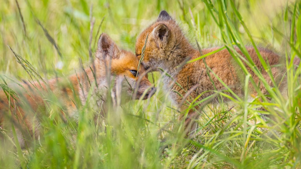 Ja, genau: die zufällige Begegnung mit Welpen des Rotfuchses (Vulpes vulpes) eines schönen Maimorgens in der Nähe von Leipzig im schönen Sachsen. Das war sehr wunderbar, die beiden verspielten und auch etwas neugierigen jungen Säugetiere rund um ihren weitverzweigten Bau zu beobachten. Eines der beiden etwas mutiger, das andere etwas scheuer (vielleicht jünger?) – aber nicht minder neugierig. Sie tourten ein bisschen durch die Umgebung ihres Baues, verschwanden aber auch immer mal wieder in einem der zahlreichen Eingänge (better safe than sorry).