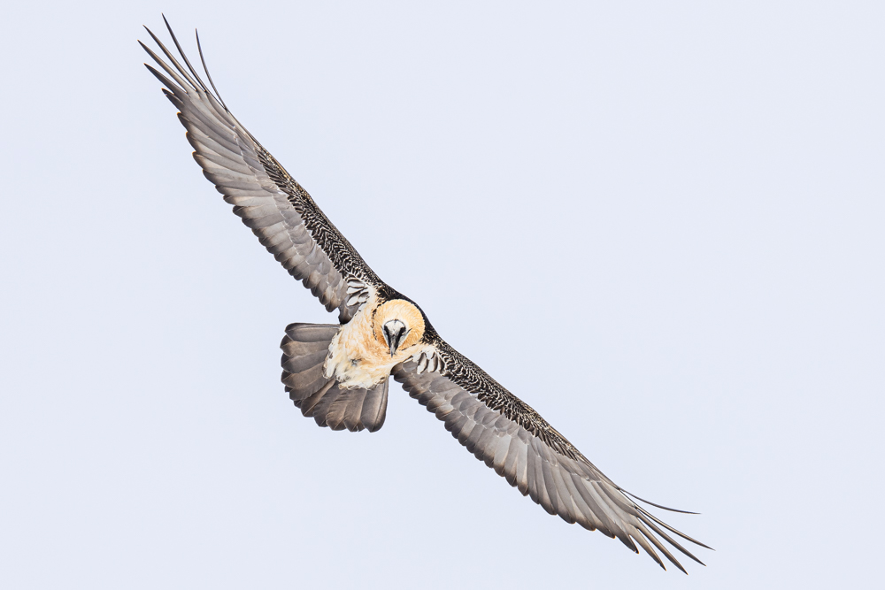 Preisfrage: Warum war er denn überhaupt so selten geworden und vielerorts komplett verschwunden? Einen Hinweis darauf gibt der alte, volkstümliche Name „Lämmergeier“. Angeblich hat sich der Bartgeier nämlich an Vieh vergriffen und sogar bisweilen ein Menschenkind als Beute entführt. Kompletter Nonsens. Aber leider Grund genug, ihn gezielt zu bejagen und auszurotten. So ganz ist dieser dämliche Irrglaube noch nicht verschwunden, noch immer wird dem Bartgeier leider von manchen Leuten nachgestellt. Aber für viele Naturinteressierte ist er inzwischen ein zu schützender Sympathieträger, und die Population wächst stetig an.