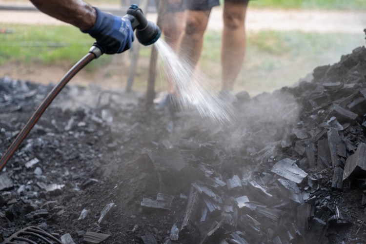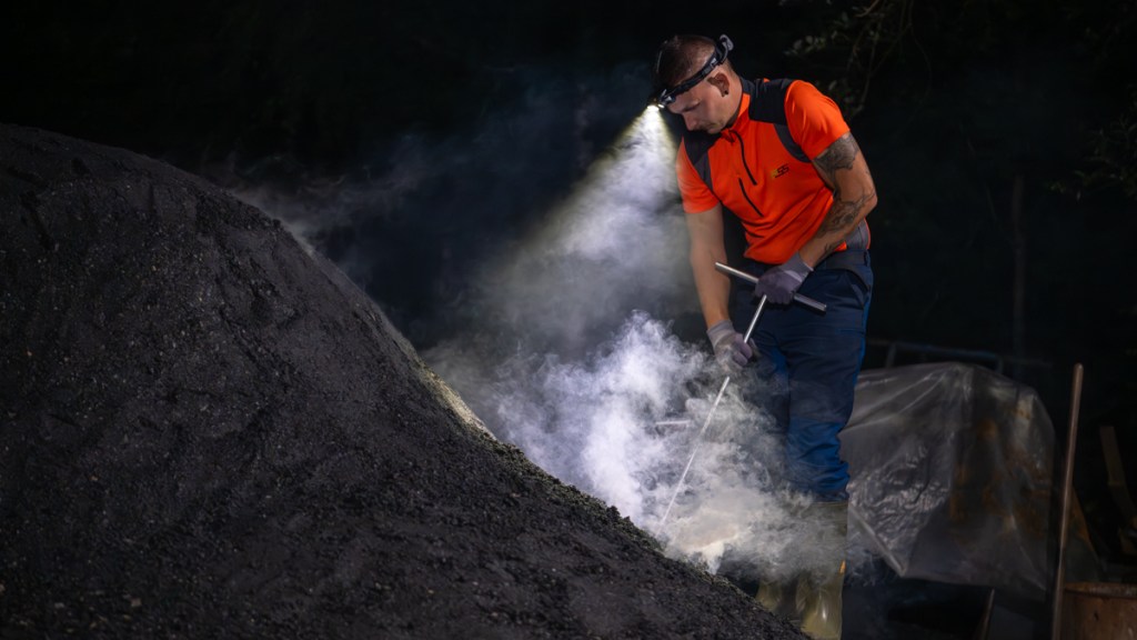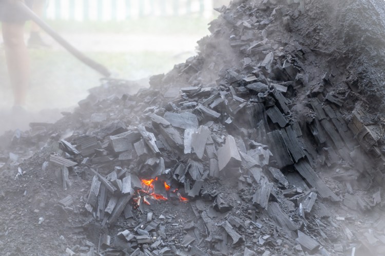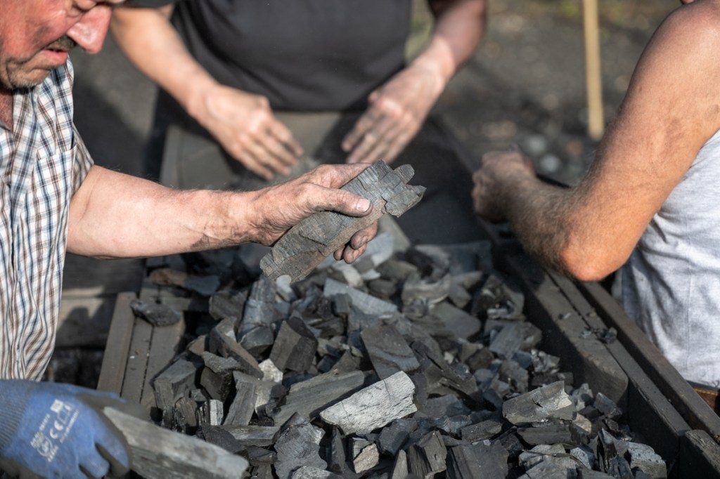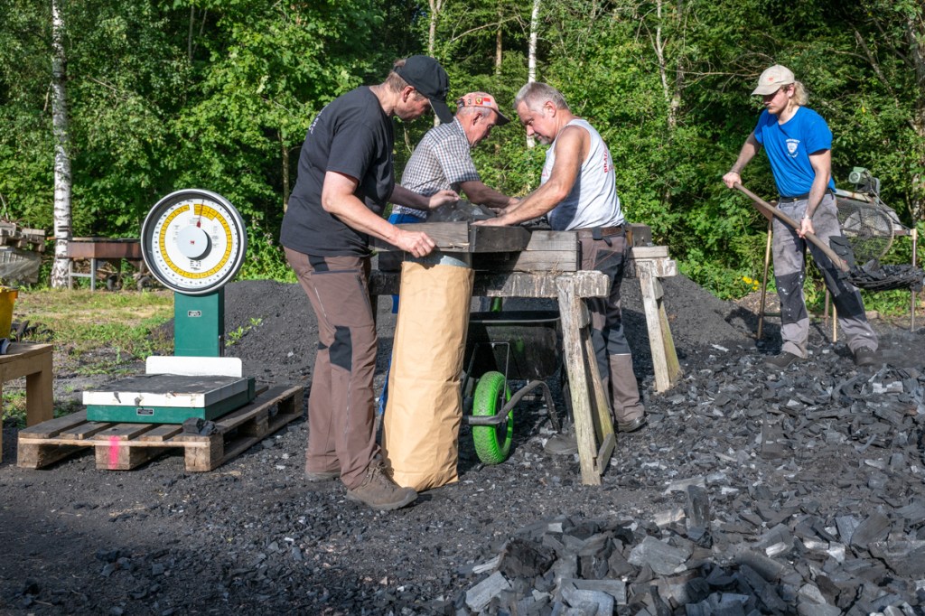 Bevor es ans Verpacken geht, muss die Kohle erst vollständig abkühlen. Dass es dazu schon manche „feurige” Geschichte zu erzählen gibt, kann man sich denken.