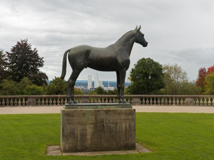 Ich schwinge mich also in Lörrach in den Sattel und durchquere zunächst Riehen. Wer hier bereits einen schönen Blick auf Basel genießen möchte, muss sich nicht bis Chrischona hinaufquälen, sondern steuert den Wenkenhof an. Dort befindet sich auch das Denkmal Wenkenrössli. Man muss dem Pferd dabei nicht zwangsläufig durch die Beine schauen für einen Blick über Basel auf die Roche-Türme.
