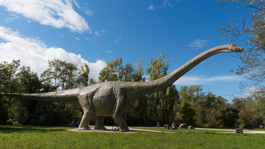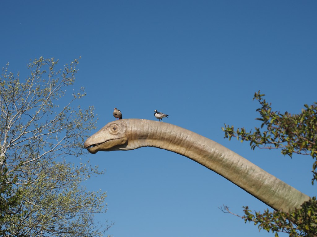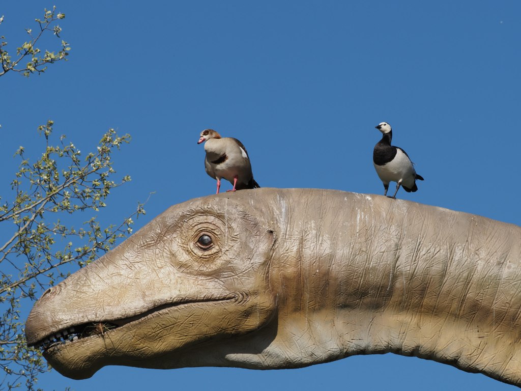 Weiter geht es vorbei an vielen Gleisen und dem Sportpark St. Jakob hin zum Park im Grünen, wo schon von weitem der Seismosaurus grüßt. Dieses gigantische Exemplar steht dort zur Freude großer und kleiner Dino-Fans. Er dient aber auch der ein oder anderen Gans als Ausguck.