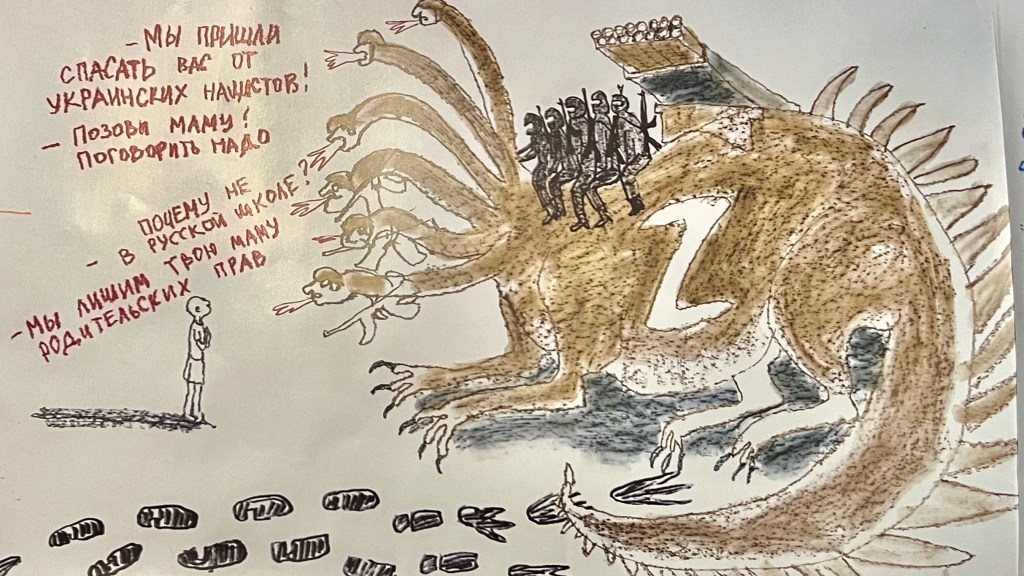 Während der polnische Staat an der Grenze zu Belarus mit harter Hand gegen Flüchtlinge vorgeht, hat die Stadt Przemyśl im Gegensatz dazu Tausende Hilfesuchende aus der Ukraine aufgenommen. Eine Ausstellung im Ukrainischen Haus mit Zeichnungen ukrainischer Flüchtlingskinder ließ uns erahnen, welche schrecklichen Dinge diese kleinen Menschen erlebt haben müssen – auch wenn ich den Text dazu nicht lesen konnte.