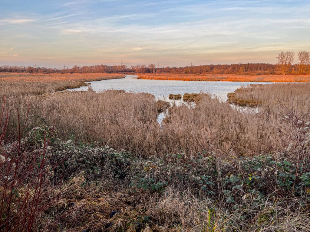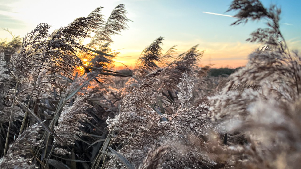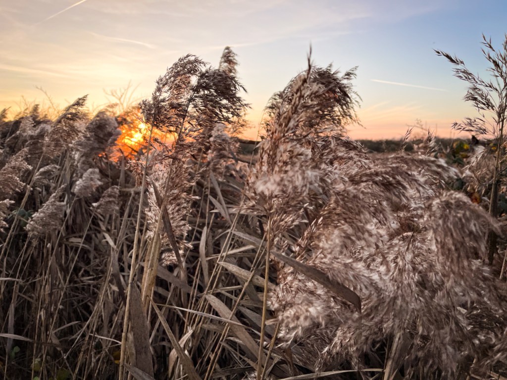 Ja, und da steht man so und bestaunt die wild raschelnden Schilfhalme im kalten Wind, in denen sich die letzten Strahlen der früh untergehenden Sonne brechen. Und man denkt, warum bitte soll das jetzt nicht weihnachtlich sein? Etwa nur weil kein (Kunst-)Schnee rieselt und kein Glöcklein bimmelt? Weil weit und breit kein Rentierschlitten am Himmel seine Kreise zieht?