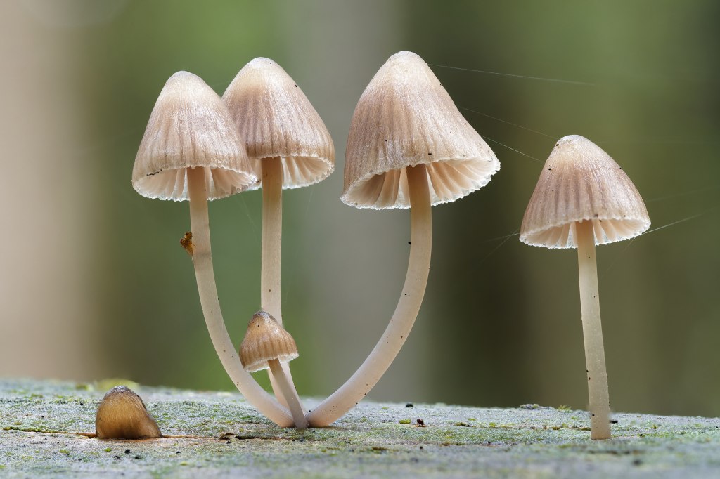 Der Kegelige Helmling ist nur wenige Zentimeter groß und leicht zu übersehen. Zum Glück haben Pilze keine Fluchtdistanz, so dass ich mit der Taschenlampe die Lamellen besser ausleuchten konnte.