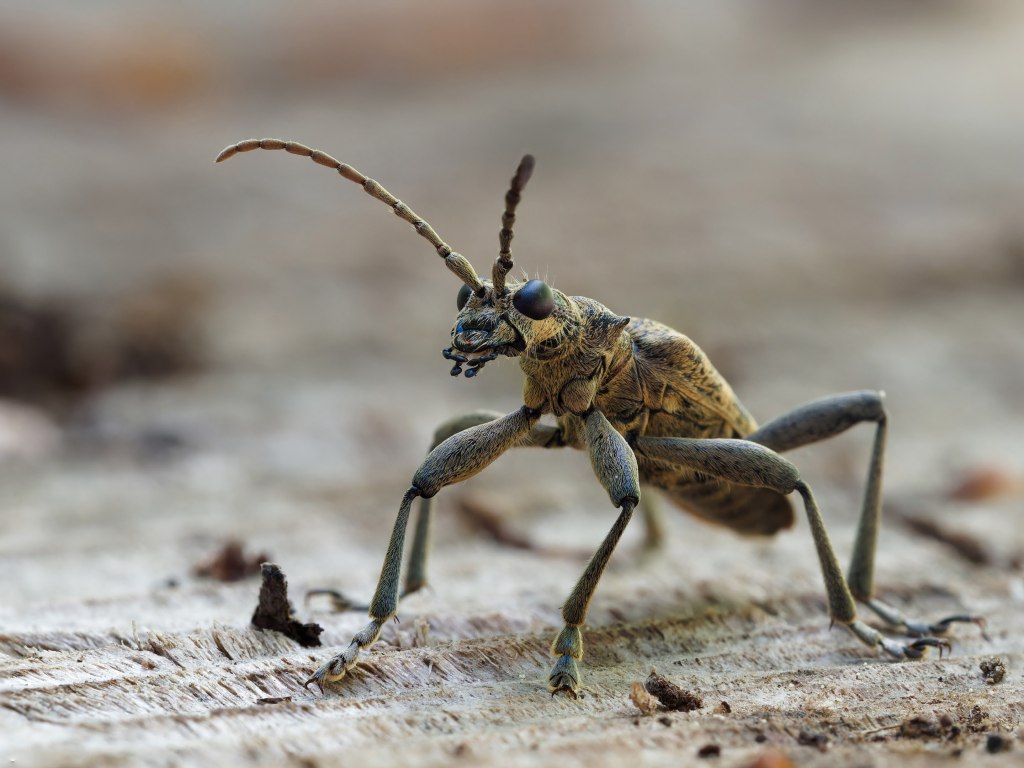 Der Schwarzfleckige Zangenbock in der Nähe des Gislifluh im Jurapark war eine schöne Zufallsbegegnung. Er blieb freundlicherweise in seiner hochbeinigen Position so lange auf dem Baumstumpf sitzen, dass ich sogar eine kleine Stack-Serie aufnehmen konnte.