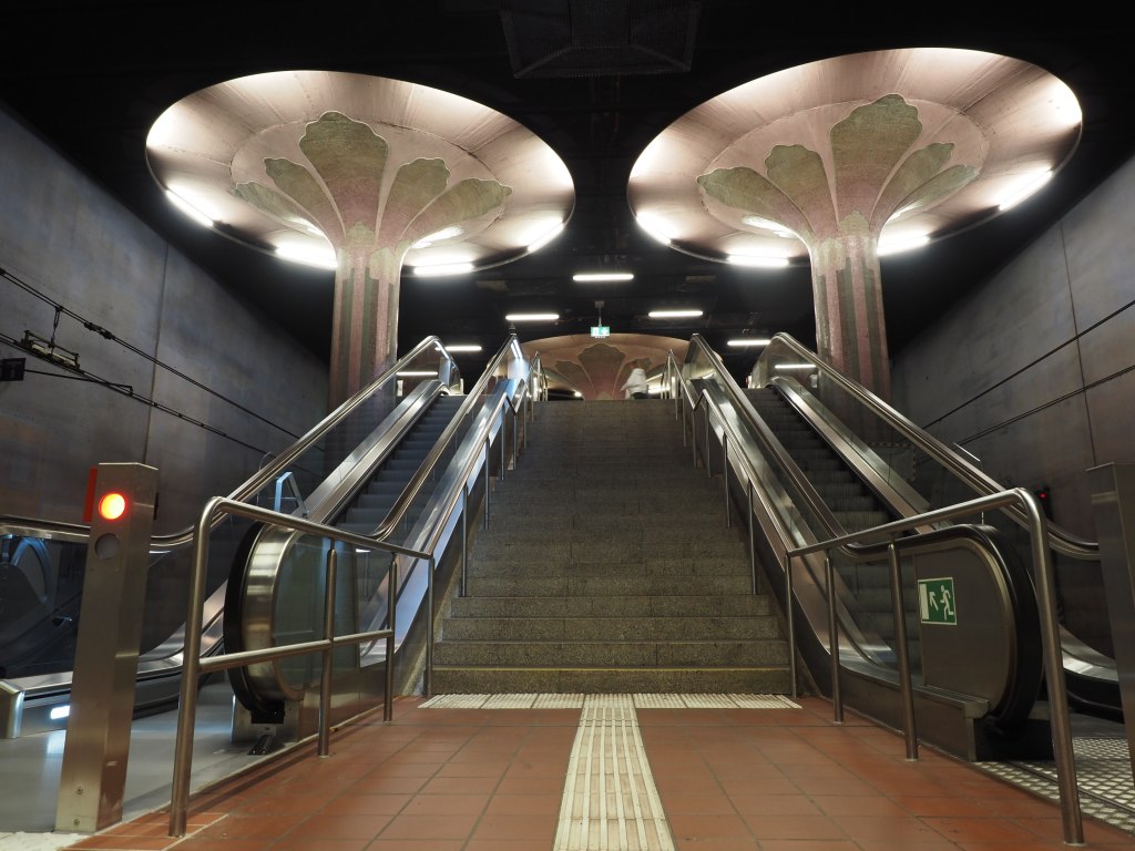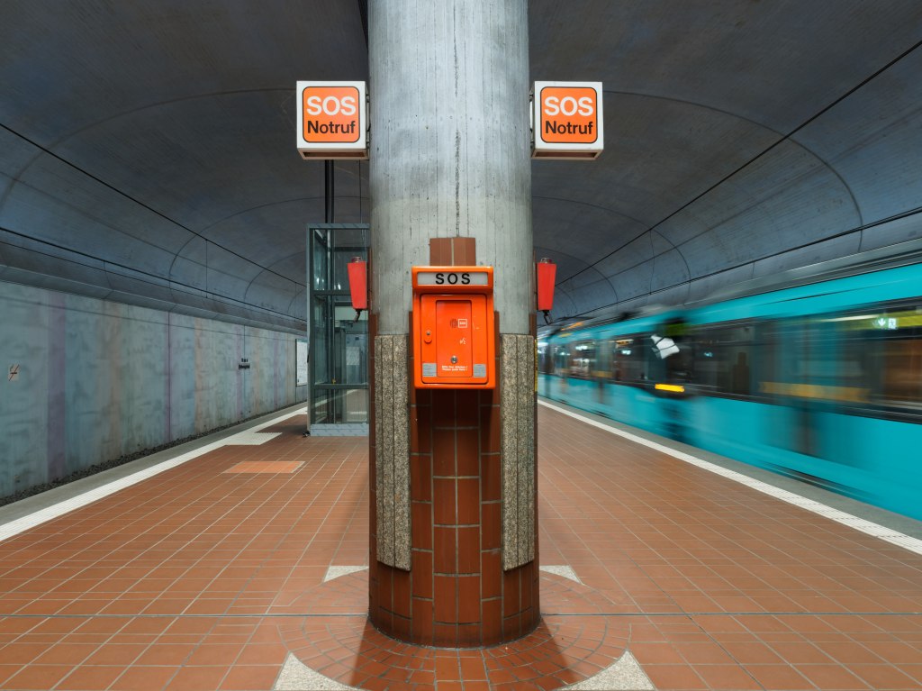 Die Stadt geht ja hoch hinaus, aber wir starten unterirdisch: in der U-Bahnstation Westend. Die erleuchteten Säulen weisen bereits den Weg Richtung Palmengarten. Und wenn die U-Bahn abgefahren ist, herrscht für ein paar Augenblicke ungewohnte Ruhe, bevor die nächsten Fahrgäste eintrudeln.