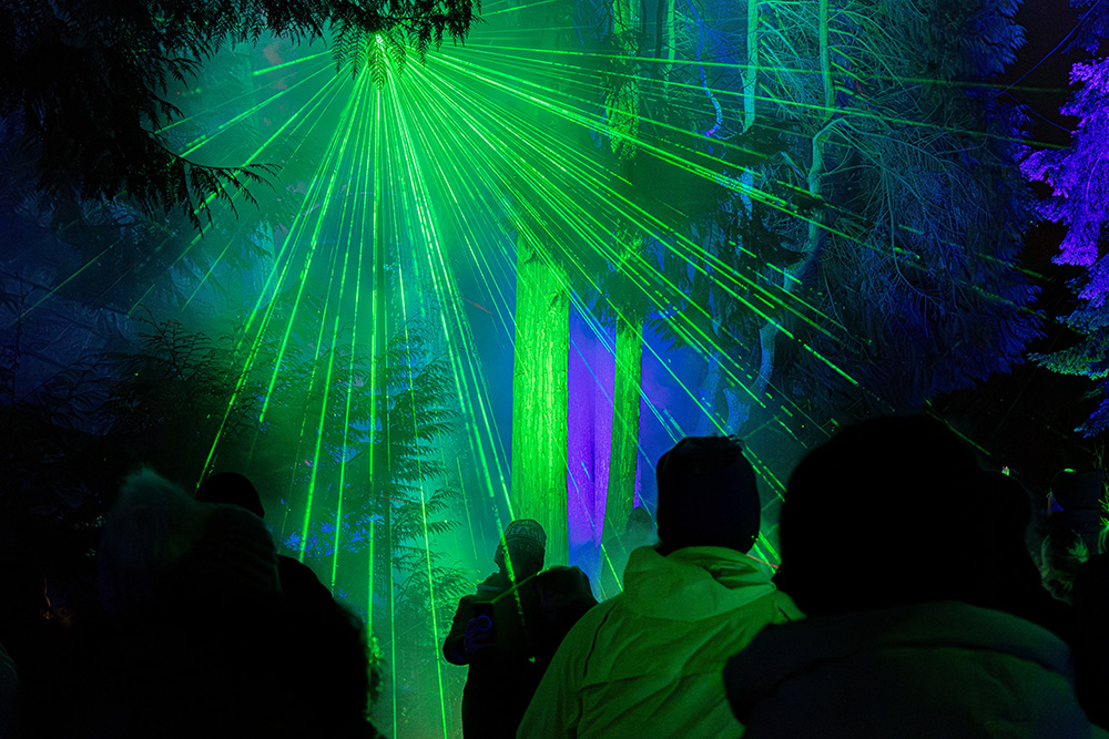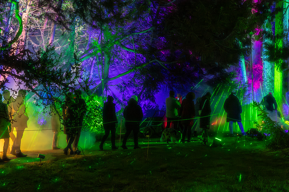 Schemenhaft bewegen sich die Besucher durch den beleuchteten Park, fast schon im Nebel verschwindend. Untermalt mit sphärischer Musik ist das ein tolles Erlebnis für Jung und alt. Man kommt aus dem Staunen nicht mehr heraus.